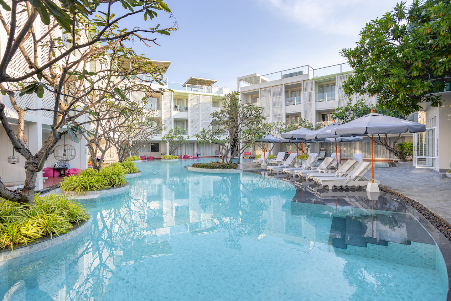 Surrounded by lush greenery and contemporary design, our lagoon-style swimming pool offers the perfect setting to relax, refresh, and reconnect. Whether you’re reclining in the shade, enjoying a peaceful swim, or sipping your favorite drink from our poolside bar, every moment invites pure serenity.